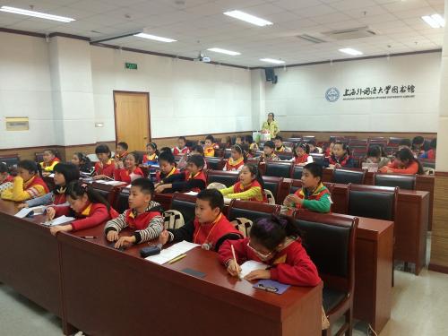 随后,大家都来到了图书馆604,我们和小记者们进行了一场别开生面的座谈会。小记者们在问答环节展现了他们的犀利,他们的问题既专业又有趣,而我们也表现得十分机智。小记者们都对上外这个以研习外国语为专长的大学非常感兴趣,我们也用德语、法语、英语、日语、韩语教他们说“你好”,大家在欢声笑语中圆满结束了座谈会。