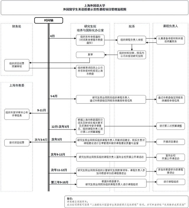 【培养—创新】上海外国语大学外国留学生英语授课示范性课程项目管理流程图