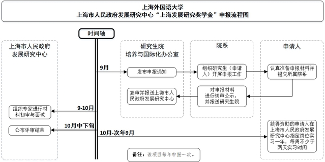【培养—奖助】上海外国语大学上海市人民政府发展研究中心“上海发展研究奖学金”申报流程图