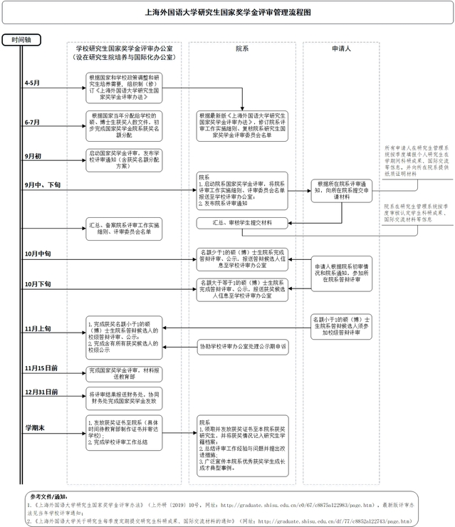 【培养—奖助】上海外国语大学研究生国家奖学金评审管理流程图