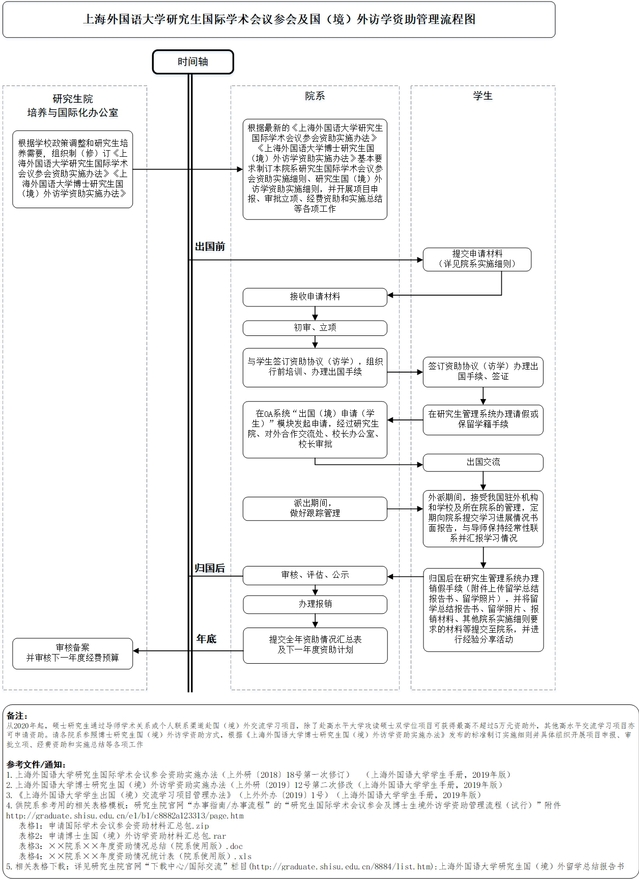 【培养—国际化】上海外国语大学研究生国际学术会议参会及国(境)外访学资助管理流程图
