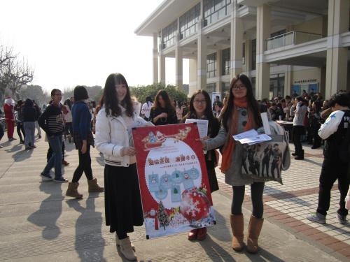 201412月24日,正值平安夜,2014级第三党支部的同学们,给班内同学,校内同学以及校外的松江区居民们分别送去了平安果和冬季防寒保暖小贴士,让这个圣诞节充满了融融的暖意。