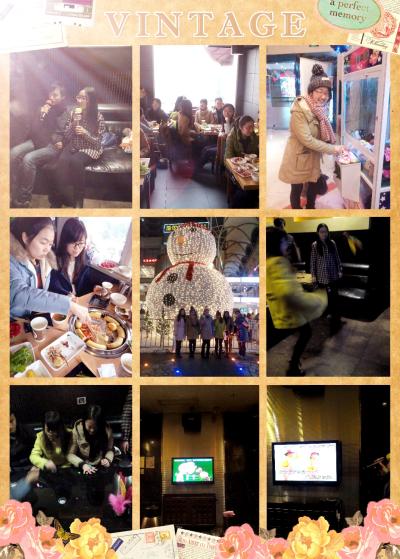 用完午餐,聊完对未来的期许,大家走进附近一家KTV,开始下个节目——忆童年。这项节目分为两个环节:“歌声里的童年”和“那些年我们做过的游戏。”KTV里,麦霸们开始演唱自己拿手的经典歌曲,大家的语言优势在K歌中得到充分展现,中文歌、粤语歌、英文歌、法文歌、韩语歌,随手拈来,尽情演绎。轮到“校园十大歌手”朱焕伟同学,她先是深情款款地唱了几首经典抒情歌曲,大家正陶醉在她动人的歌声中,突然,歌曲切换,朱同学捏着嗓子唱起来“泥娃娃,泥娃娃,一个泥娃娃……”,小伙伴们顿时被逗乐了,气氛立马high起来,各种童年歌曲轮番上场,“泥娃娃”、“抓泥鳅”、“种太阳”、“猴哥”……似乎是找到了共鸣,平时不怎么唱歌的小伙伴也坐不住了,放开嗓子唱起来。这时,李睿端同学拿出了石子儿和毽子,“哇,我好久没踢毽子了呢……”“我小时候最喜欢玩抓石子儿了!”陈瑶、徐璐马上玩起了石子儿,张琳、李秀秀、朱焕伟开心地踢起了毽子。大家纷纷加入他们的行列,玩得不亦乐乎,“哈哈哈……”欢声笑语洋溢整个包间。
