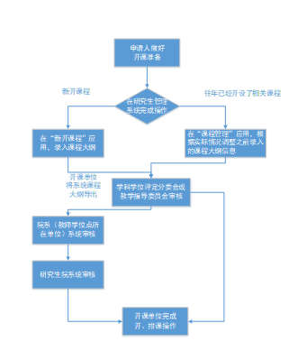 1. 开课管理。院系负责研究生课程建设、管理与质量保障工作。申请人(包括研究机构、教辅直属机构人员等)的开课管理工作由申请人归属学位点所在院系负责。
