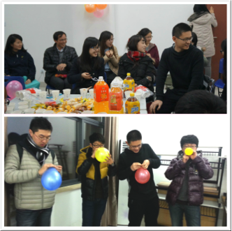 新年之际气温骤降,可是学生公寓一号楼的107教室却早早开起了空调,摆好了零食饮料,缤纷的气球装点了节日气氛。教室里充满了温馨和暖意,不时传来笑声连连,在这里20141班的同学们在1230晚上围坐一起,共度新年。