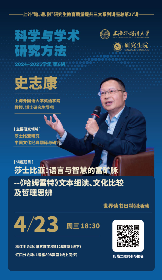 上外“跨、通、融”研究生教育质量提升三大系列讲座第二十七场讲座开启报名