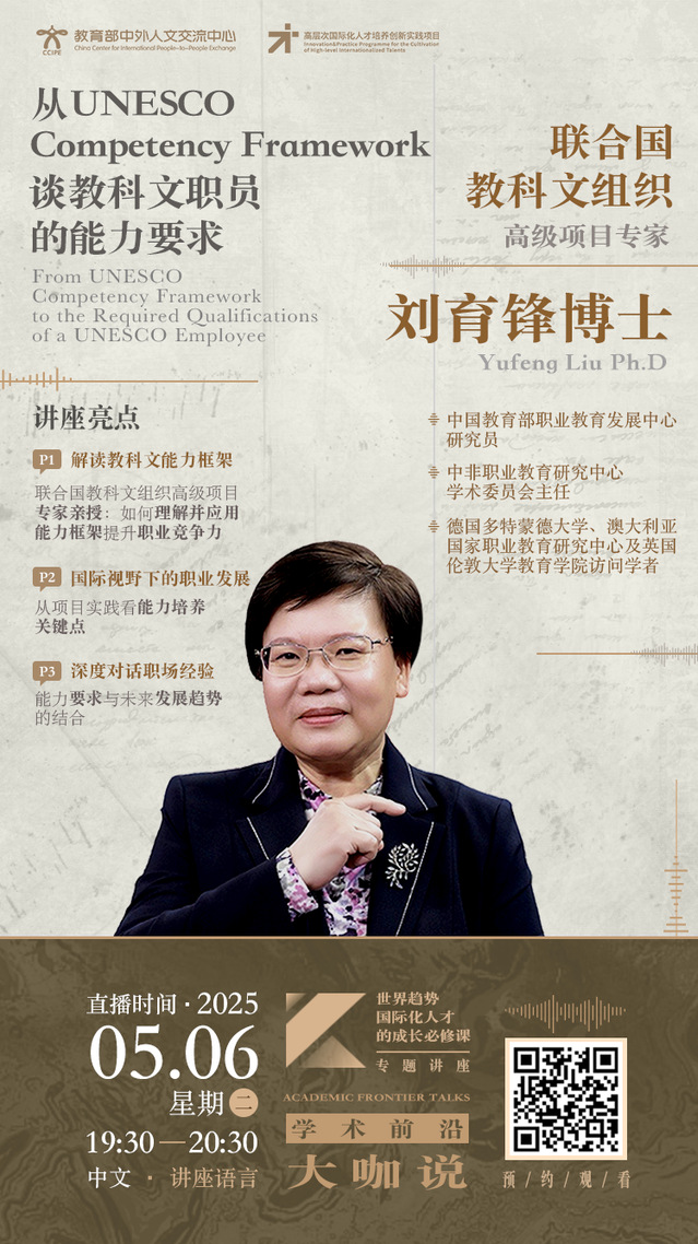 学术前沿大咖说 | 从UNESCO Competency Framework谈教科文职员的能力要求(2025年5月6日 19:30-20:30,主讲人:刘育锋)