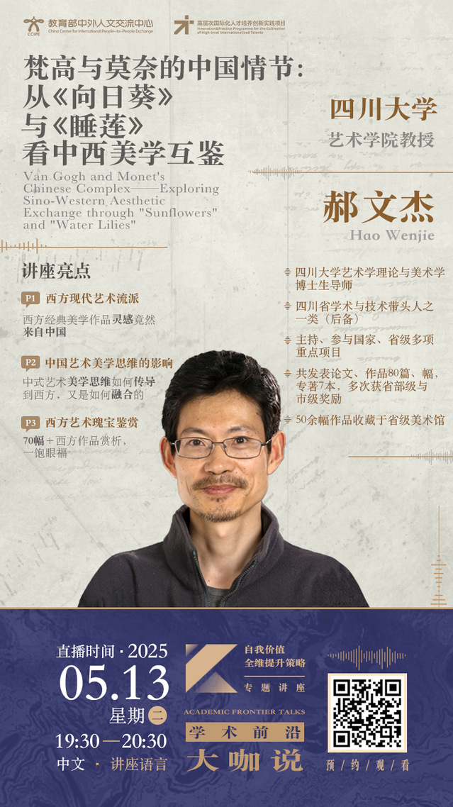 学术前沿大咖说 | 梵高与莫奈的中国情节:从《向日葵》与《睡莲》看中西美学互鉴 (2025年5月13日 19:30-20:30,主讲人:郝文杰)