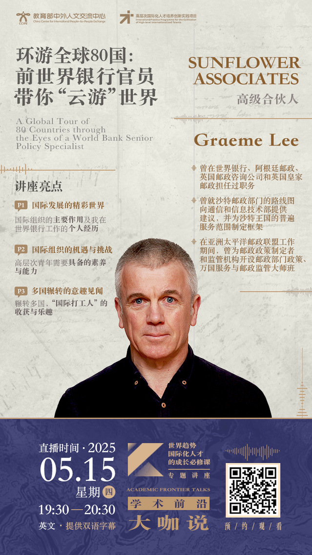 学术前沿大咖说 | 环游全球80国:前世界银行官员带你“云游”世界(2025年5月15日 19:30-20:30,主讲人:Graeme Lee)