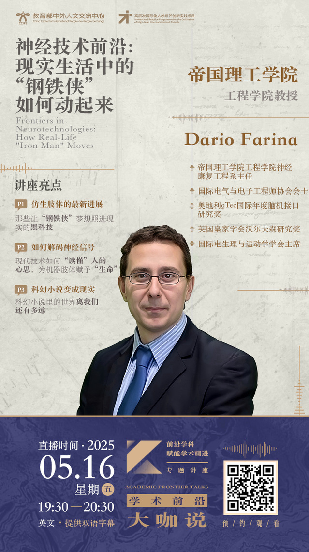 学术前沿大咖说 | 神经技术前沿:现实生活中的“钢铁侠”如何动起来 (2025年5月16日 19:30-20:30,主讲人:Dario Farina)