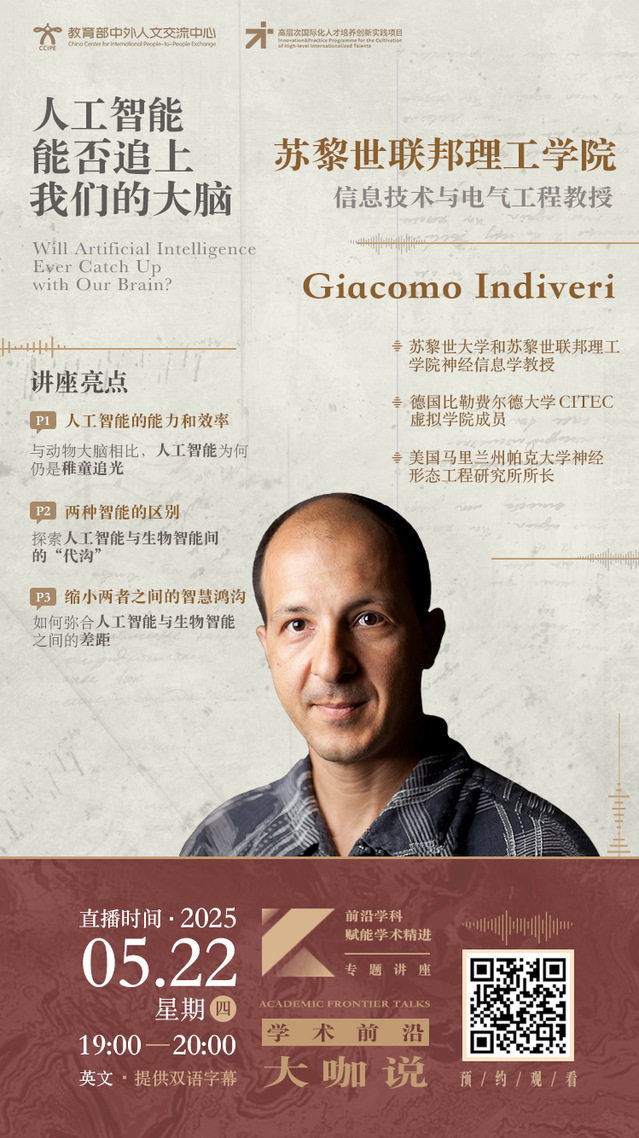 学术前沿大咖说 | 人工智能能否追上我们的大脑?(2025年5月22日 19:00-20:00,主讲人:Giacomo Indiveri)