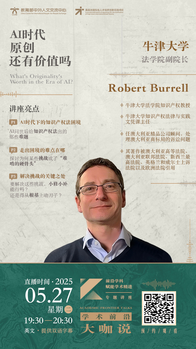 学术前沿大咖说 | AI时代,原创还有价值吗?(2025年5月27日 19:30-20:30,主讲人:Robert Burrell)