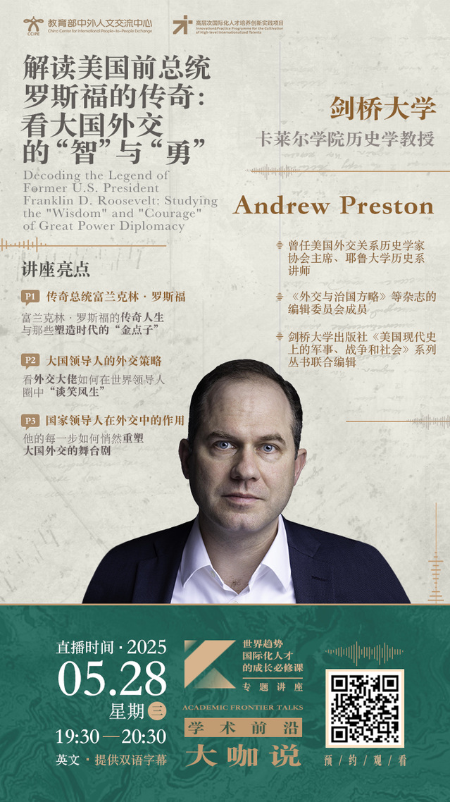 学术前沿大咖说 | 解读美国前总统罗斯福的传奇,看大国外交的“智”与“勇”(2025年5月28日 19:30-20:30,主讲人:Andrew Preston)