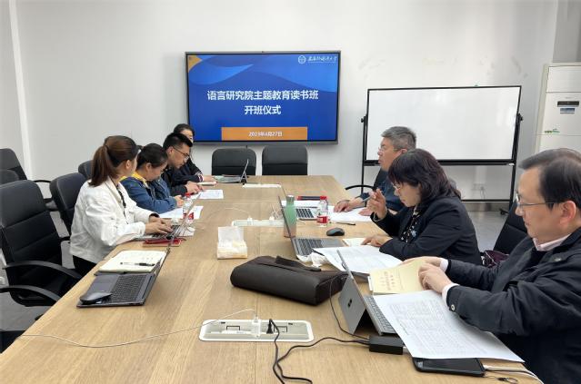 4月27日,语言研究院学习贯彻习近平新时代中国特色社会主义思想主题教育读书班开班。语言研究院党委书记蒋昕宇主持开班式并首场领学,院领导班子成员廖巧云、朱晔参与研讨交流,行政工作人员参会学习。