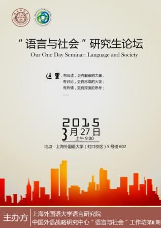 语言与社会工作坊第11期语言与社会工作坊第11期 “语言与社会”研究生论坛 时间:2015 年3 月27 日早8:40~12:00 地点:上海外国语大学(虹口校区)5 号楼602