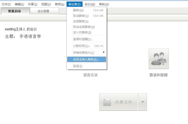主持人请在登录后的页面菜单栏中点击“参加者”——》点击“收回主持人角色”——》弹出的对话框中输入主持人会议密钥。