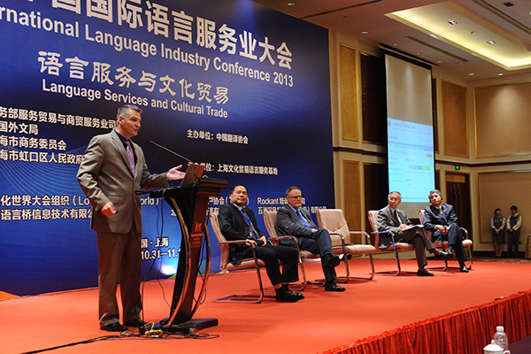 1031111,“2013中国国际语言服务业大会”(2013 China International Language Industry Conference)成功在沪举行。此次大会由中国翻译协会主办,上海文化贸易语言服务基地承办。第十一届全国政协常委、外事委员会主任、原国务院新闻办主任赵启正,上海市副市长周波,商务部服务贸易和商贸服务业司副司长吕继坚,中国译协第一常务副会长、中国外文局常务副局长郭晓勇,上海市虹口区区委书记吴清等领导和嘉宾出席大会。