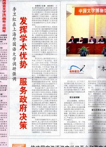 《语言文字报》头版头条报道李卫红副部长对上外的视察,充分肯定我院工作