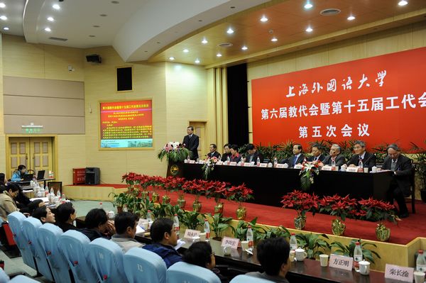上海外国语大学第六届教代会暨第十五届工代会第五次会议于2011年3月21日下午举行第二次全体会议。校党政工领导吴友富、曹德明、谭晶华、李月松、王静、盛裕良,校党委常委庄智象以及校工会常务副主席王祥兴、校工会副主席陆经生、刘振新在主席台上就坐。大会由校党委副书记、校工会主席李月松主持。 校工会副主席陆经生就本次校“双代会”各代表团讨论与审议《学校年度工作报告》、《校工会年度工作报告》和《学校财务工作报告》等大会各项报告与文件的情况作了简要通报。 校工会副主席刘振新就2010年提案工作和2011年提案情况分别作了总结与通报。 校工会常务副主席、校“双代会”主席团秘书长王祥兴宣读了《上外第六届五次教代会决议(草案)》和《上外第十五届五次工代会决议(草案)》。代表们经举手表决,一致通过这两个《决议》。 代表们经举手表决,一致通过了《上海外国语大学教代会代表巡视工作制度》。 大会对2010年度荣获全国、上海市、上海市教育系统和上外各项荣誉称号以及上外“先进教工小家”、“优秀工会干部”、“工会活动积极分子”等荣誉称号的先进集体与个人进行了表彰,举行了颁奖仪式。 大会号召,全校教职员工以邓小平理论和“三个代表”重要思想为指导, 坚持以科学发展观为统领,深入贯彻落实国家和上海市中长期教育改革和发展纲要精神。在校党委的领导下,承前启后,开拓创新,积极推进学校“四三二一”发展战略,全面实施学校“十二五”改革和发展规划,为把我校建设成为多科性国际化高水平的特色外国语大学而努力奋斗。 在大会闭幕式上,校党委书记吴友富作了重要讲话。 吴友富代表校党委对本次校“双代会”的圆满成功表示祝贺,向全校教职员工致以亲切问候,并对在过去一年里校工会工作取得的各项显著成绩予以了高度评价。 吴友富强调指出,今年是中国共产党成立九十周年,是国家和上海市《中长期教育改革和发展规划纲要》的启动之年,也是我校“十二五”规划的开局之年,是学校全力推进“四三二一”发展战略、打造国际型特色人才培养创新平台、实现“十二五”时期又好又快发展的关键一年。面对新的形势、新的任务,我们要认真贯彻落实党的十七届五中全会、全国教育工作会议精神和国家以及上海市《中长期教育改革和发展规划纲要》提出的各项工作目标与任务,凝心聚力,开拓创新,不断提升核心竞争力和综合实力,努力推动学校科学发展、和谐发展。 就如何在新形势下进一步继续加强工会工作和“双代会”制度建设,吴友富代表校党委从四个方面提出了指导性意见: 一是进一步增强工会组织与工会干部的主动性和创造性。要围绕中心、服务大局,结合全校正在深入开展的创先争优活动,将创先争优活动与学校中心工作、工会工作紧密结合起来,不断创新思路、丰富载体,充分发挥党组织的战斗堡垒作用和党员干部的先锋模范作用,团结动员广大教职工立足本职岗位,争创一流业绩,把党的政治优势和组织优势转化为推动学校“十二五”期间和谐发展的强大动力。 二是进一步发挥好教代会的功能和作用。要坚定贯彻全心全意依靠教职工办学的指导方针,继续强化教代会的功能和地位,丰富工作内容,规范工作程序,以进一步提高学校依法治校、科学决策和民主办学的能力和水平。完善二级教代会的运行机制、组织制度和工作制度,规范教代会的职权,建立本单位事务公开和重大问题通报制度,推动基层单位管理的民主化和科学化。继续推进党务、校务公开,重点强化基层单位的党务、院(系)务公开工作,探索建立向教代会作党务、校务公开的汇报制度,切实保障教职工知情权、参与权和监督权。 三是进一步抓好“凝聚力”工程。要坚持以人为本,服务为先的理念,切实维护教职工的基本权益,着力解决好教职工最关心、最直接、最实际的利益问题。继续做好教职工“十必访”慰问工作,特别是对生活困难、患重大疾病者,要做到主动上门、热心服务,让困难群众走进“春天里”,切切实实感受到党的温暖。继续加强校园文化建设,开展丰富多彩的文体娱乐活动,促进广大教职工身心健康。 四是进一步加强工会自身建设。要紧紧围绕“建设一个什么样的工会”和“怎样建设工会”这个根本问题,结合学习型党组织的创建,创新学习方式,丰富学习内容,努力打造学习型、创新型工会组织。按照“四风建设”的工作要求,继续抓好“作风”建设,深入基层一线,察民情,体民意,征求群众的意见和建议,为党委科学民主决策提供可靠依据;同时,还要继续抓好“会风”建设,修改有关会议制度,确保各种会议有序、高效,并倡导无纸化办公和短、实、新的文风。 吴友富表示,相信全校各级工会组织在科学发展观的指导下,一定能紧紧围绕学校“十二五”规划提出的各项工作任务,进一步增强做好新时期工会工作的责任感和使命感,锐意进取、勇于探索,为全面推进学校“四三二一”发展战略、为推动我校“十二五”时期各项事业科学发展作出新的更大贡献。 在庄严的《国际歌》声中,上外第六届五次教代会暨第十五届五次工代会胜利闭幕。(缪迅) |