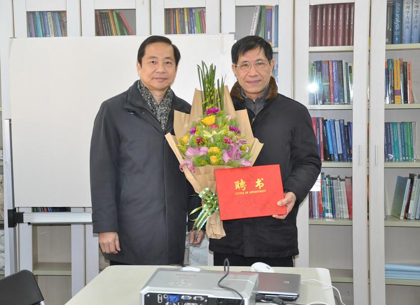 1月5日,语言研究院召开全体会议,聘请前任常务副院长许余龙教授担任我院名誉院长。校长曹德明教授参加了这次活动,并亲自为许余龙教授颁发聘书。曹校长高度评价了许教授的人品、学品及其作为语言研究院首任院长所做的工作。我院成员以热烈的掌声和鲜花表达了对这位德高望重的学者的由衷敬意。会后,曹校长与我院全体人员共进午餐,并听取了大家对研究院发展的建议。 |