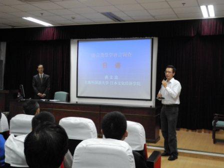 语言研究院副院长朱磊博士主持讲座 日本文化经济学院的盛 |