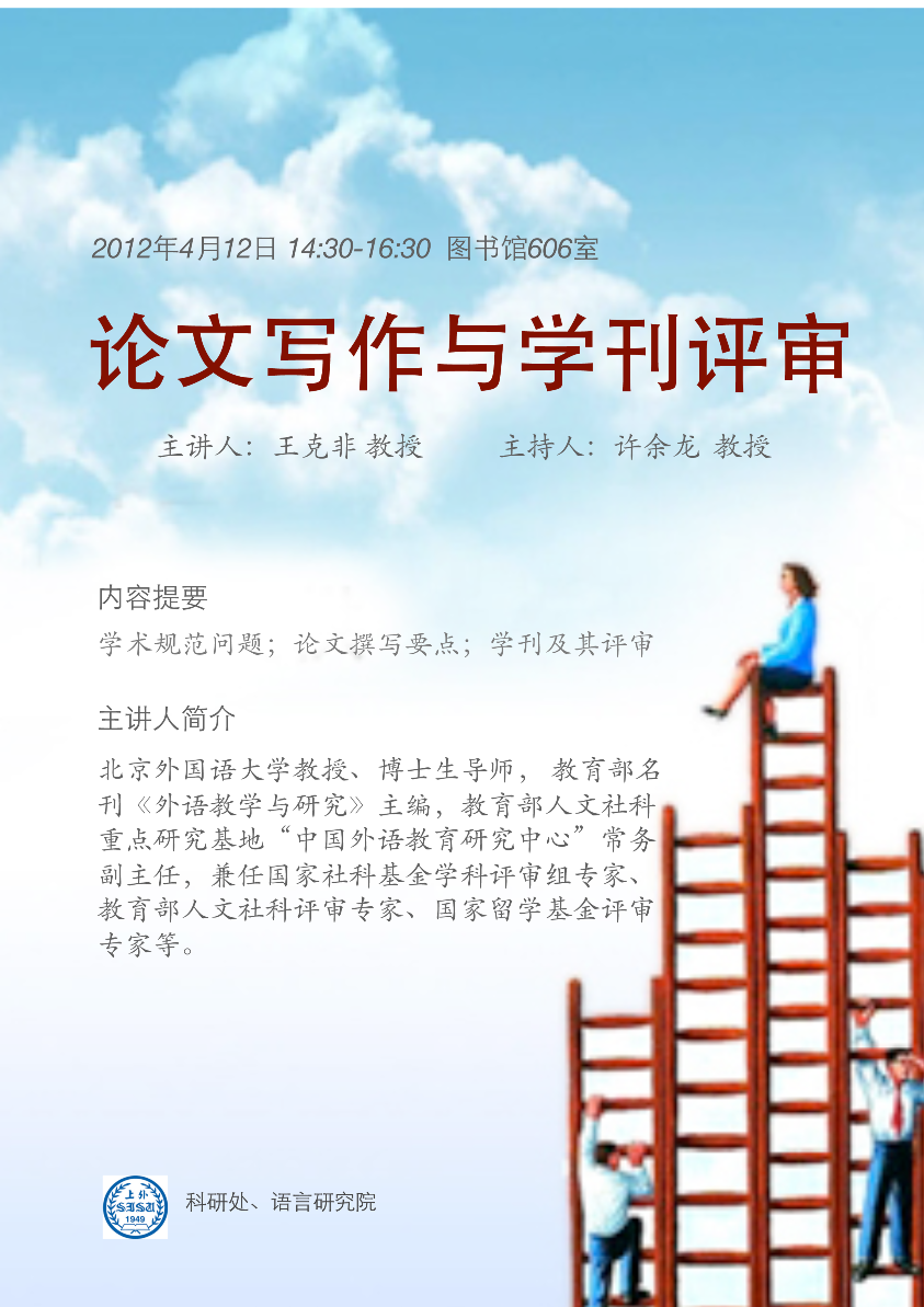 【讲座4月12日】王克非:论文写作与学刊评审