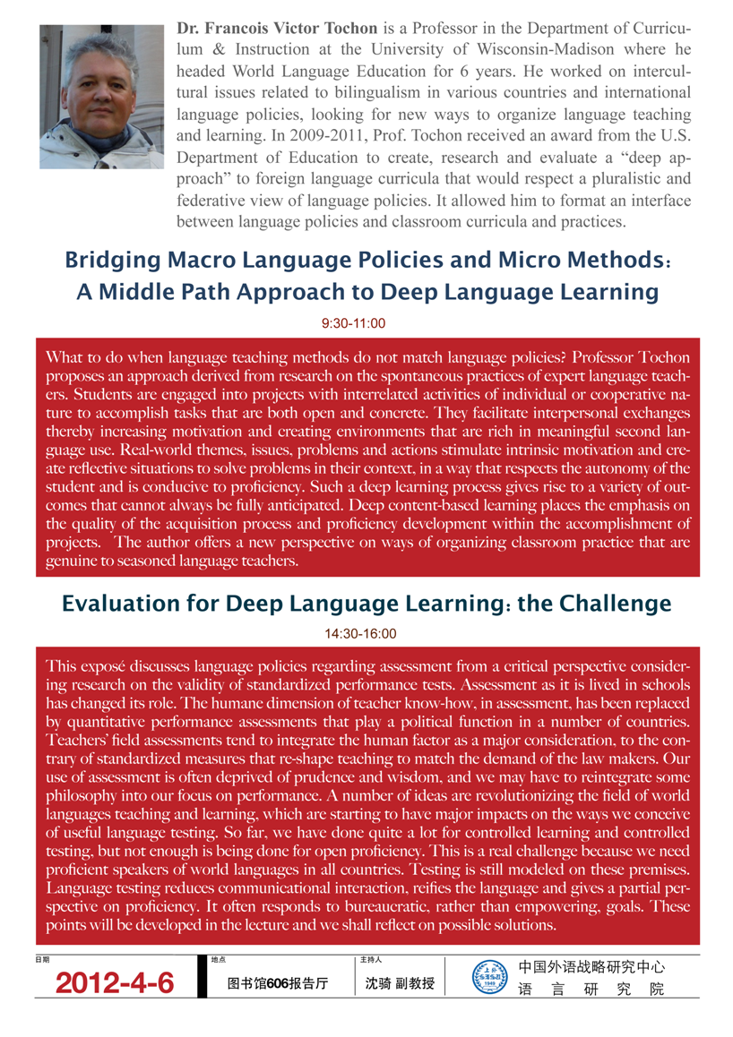 【讲座4月6日】Dr. Francois Victor Tochon:A Middle Path Approach to Deep Language Learning