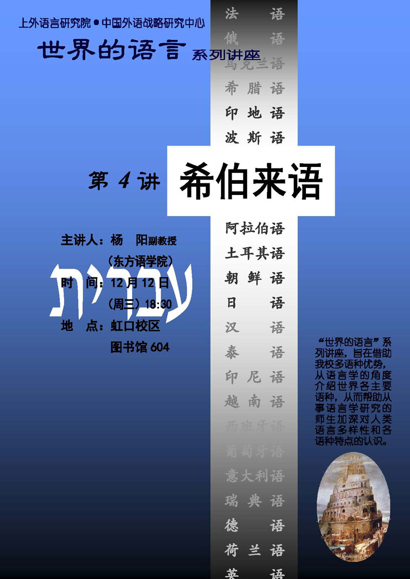 “世界的语言”系列讲座,旨在借助我校多语种优势,从语言学的角度介绍世界各主要语种,从而帮助从事语言学研究的师生加深对人类语言多样性和各语种特点的认识。欢迎各位老师同学前来参加!