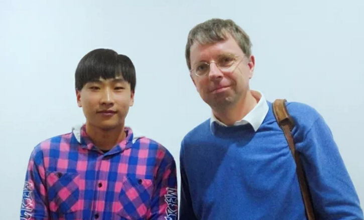 图为叶子与德国语言学家 Martin Haspelmath