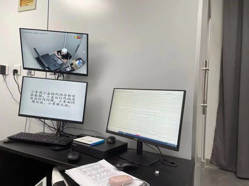 脑电图技术在心理/神经语言学的研究中应用广泛,该技术用于记录大脑电活动的实时变化,被试进行特定实验任务时的脑电活动可反映相关心理、认知过程的神经基础。语言科学研究院的脑电实验室配备Brain Products脑电图系统、64导联主动/被动电极脑电帽,可测量毫秒级的脑电活动(一般采样率500赫兹)。同时也配备Biopac多导生理仪,用于记录被试的其他生理信号,如心电图、肌电图、脉搏等。脑电图记录和多导生理信号记录都具有高时间分辨率的特点,可通过外部数据接口模块实现同步,以同时考察实验任务相关的脑电反应与其他生理指标的关系。