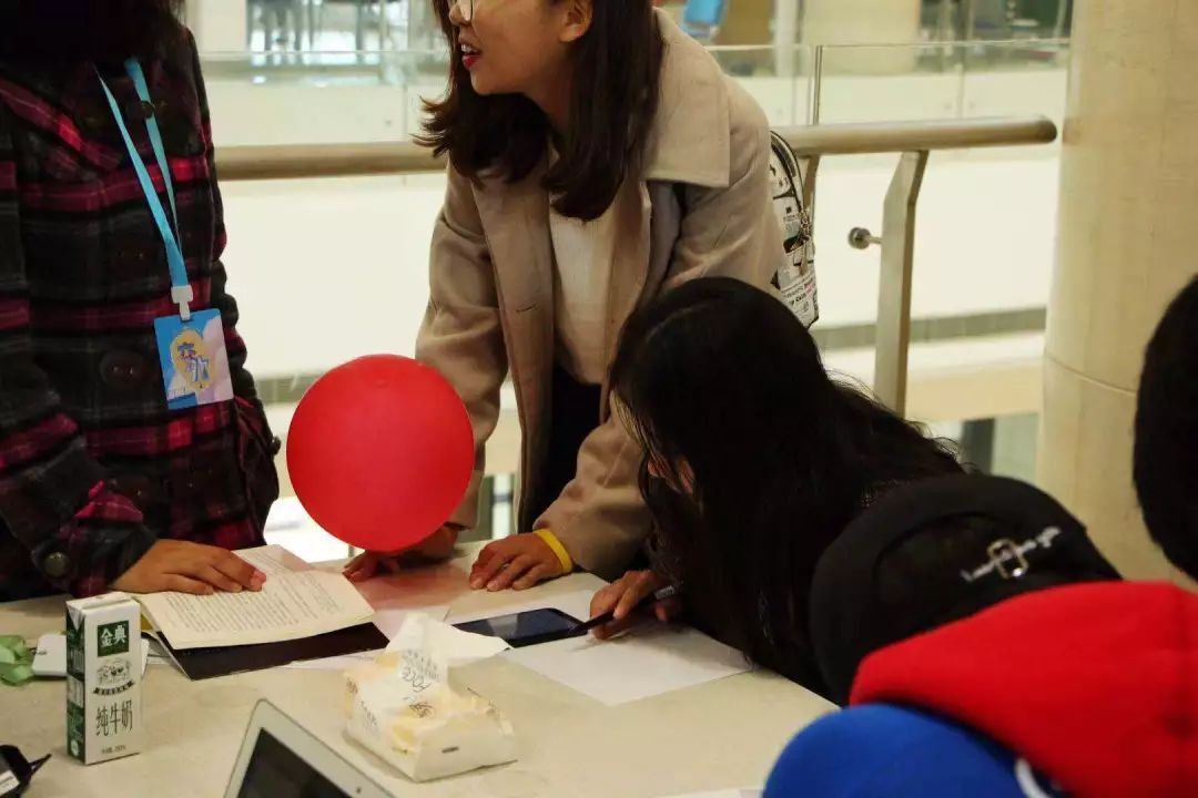 小心翼翼地夹着气球
