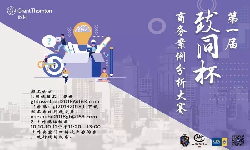 活动简介:“致同杯”上海市大学生商务案例分析大赛是由致同会计师事务所与上海外国语大学国际金融贸易学院共同主办、澳洲会计师公会协办的一场面向上海市各大高校学生的全英文学术盛会。其前身为“安永华明杯”,该赛事迄今已成功举办五届,而现今以全新的形态重新登场。实地培训将会有来自致同、澳会以及上一届比赛的冠军队伍出席向大家分享相关的赛事经验,敬请期待!