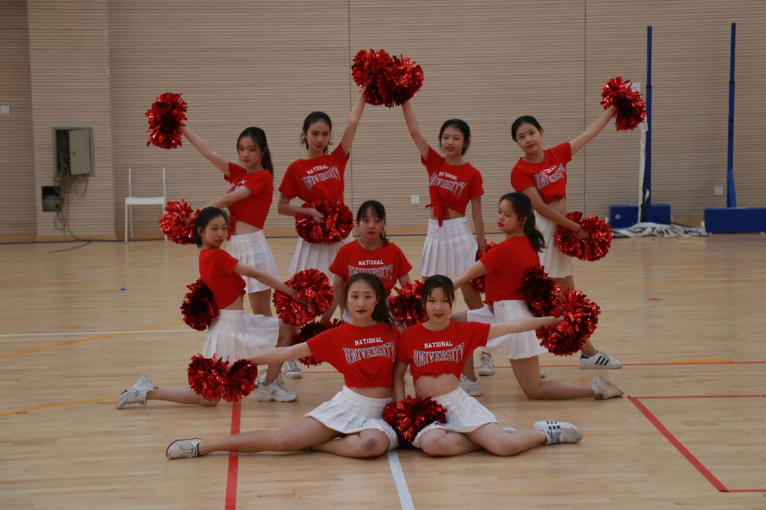 用汗水浇灌的花朵绽放时格外动人。经过一个半月高强度训练,在19日下午的校长杯啦啦操比赛中9名女生代表金院赛出了一等奖的好成绩。她们不仅高质量地完成了指定动作,自己编排了复杂的队形,还加入了自编舞蹈。用整齐的动作队形,用将每一个动作做到极致的态度,用自信与微笑,展现了独属于她们的青春与金院的风采。