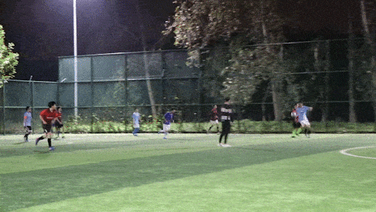 英院依旧保持着上半场的攻势,向边路频频发起进攻,好在李昊多次卡住位置将球安全解围,确保城门不失。张博涵作为后卫线上的前辈,也是耐心在后场组织梳理,可谓节拍器。下半场中段时,英院抓住了一次我方后场失误,对方7号球员将球推射入网,英院2比0领先。