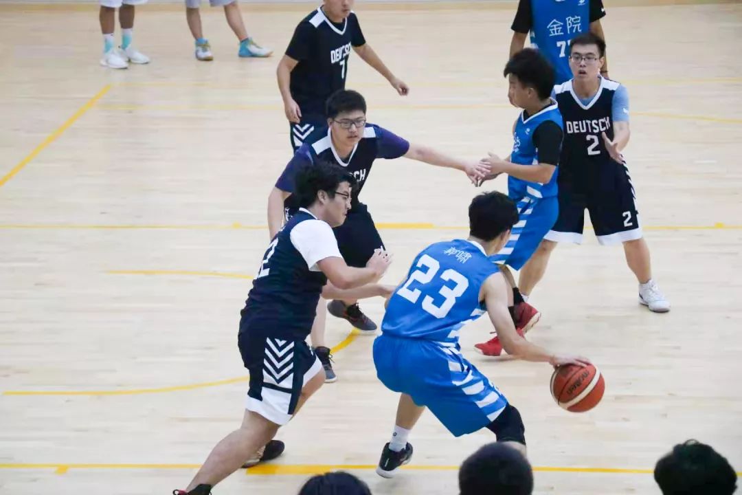 短暂休息过后,下半场比赛开始,金院换上四替补阵容。董刘丰篮下“小陀螺”转起来,晃得德语内线频繁起跳,如戏耍一般打进两分。胡聪抢断发起快攻,造成打手犯规,两罚一中。聂阳在接下来的一次防守中贡献精彩盖帽,丝毫不给德语得分机会,他又在篮下捡到篮板上空篮球进。德语在本节快要结束时刻凭借中投拿到两分。陆一周也不甘示弱,牛角两分球进。第三节结束,金院32:12领先20分。