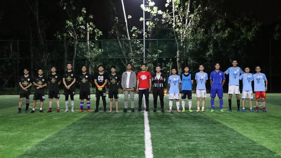 比赛开始,双方队员就进入了激烈的拼抢。攻防转换几个回合过后,金院队的进攻开始渐渐有了起色。8号宋君恺在禁区右侧拿到一个不错的机会,起脚推射打门。虽然被对方门将挡出,没能形成进球,但这次进攻很好地提升了球队的士气。五分钟后,金院打出快速反击,同样是8号,在禁区位置形成射门,足球直挂左下死角。1:0!