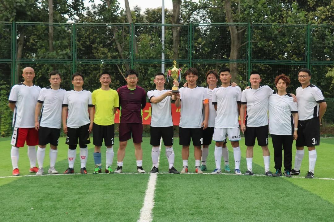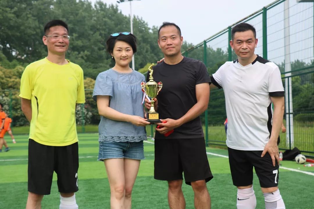 所有比赛结束之后,进行了颁奖仪式,由章玉贵院长向参加比赛的上外教职工队、ACCA足球队、中国银行足球队和上外校友队颁发奖杯,并邀请比赛人员一起合影留念,圆满完成了本次上海外国语大学“校庆杯”足球邀请赛。
