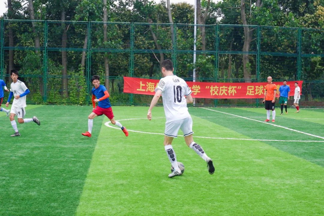 冠军争夺战,上午获胜的两支队伍进行PK。上外教职工队和上外校友队,是师生,是朋友,也是对手。双方都各有机会,也不乏精彩的倒钩射门,但是距离进球都差临门一脚。双方逐渐进入状态,在一次角球中,教职工队伍利用头球打破僵局,率先破门,1-0!紧接着,教职工队伍的10号球员在中场连过2人,再次以一记世界波扩大比分。校友队以一记突破抽射回应进球,扳回一城,但最终双方没有再取得进球,上外教职工队以2-1获得比赛的最终胜利!