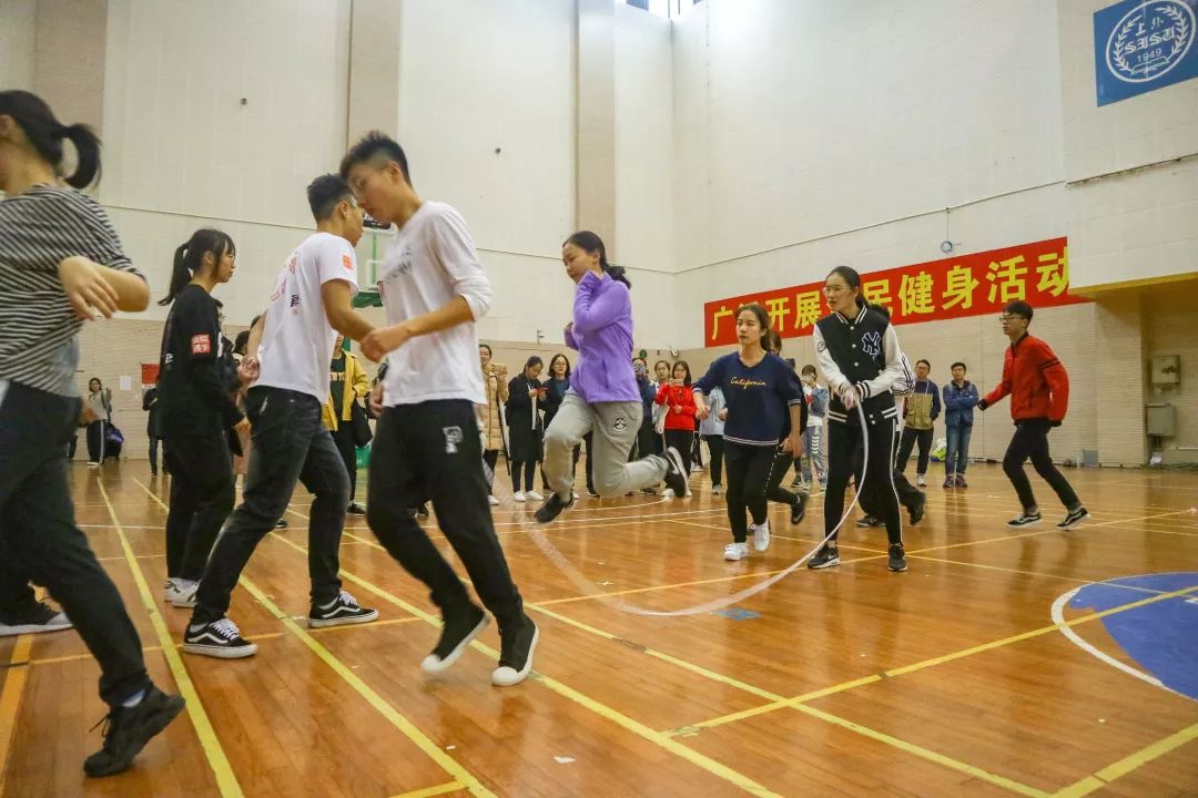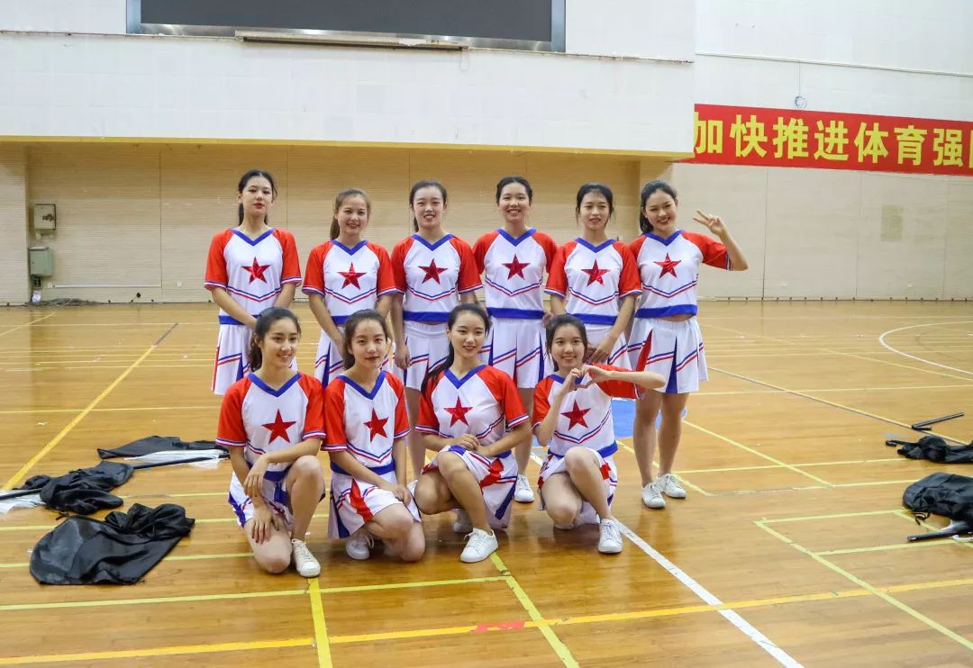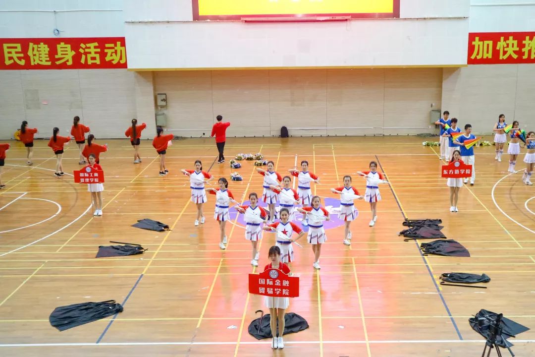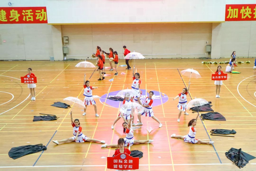 拉拉操队员们踏着活泼轻盈的步伐为赛事助威;每一位金院人都在为运动健儿们加油打气。