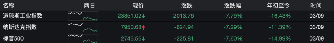 而到了晚间美国股市开盘后,也因跌幅过大很快熔断。标普500指数开盘四分钟便下跌7%,触发第一层熔断机制,美股全线暂停交易15分钟;此外,触发熔断的还有巴西股市。11年前美股开启的牛市时代正面临前所未有的威胁。第三块多米诺骨牌随着道琼斯指数的跳水也应声而倒……