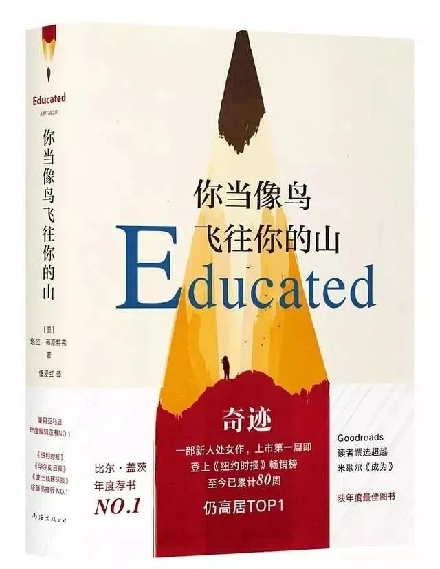 通过写下自己的故事,作者塔拉找到了一种答案。教育意味着自我创造,它告诉小鸟天空有多宽广,同时也告诉小鸟天空有狂风暴雨。笼子没有上锁,选择权在你自己手里。你当像鸟飞往你的山。