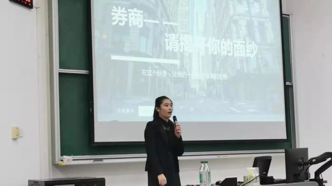 10月15号晚,李施老师给金院同学带来了一场关于券商就业的讲座,生动形象地讲述了什么是券商,券商有哪些部门和岗位,我们梦想当中的投行到底是做什么的等问题。