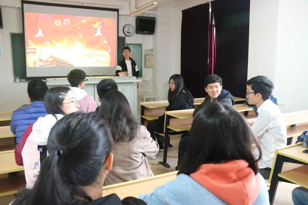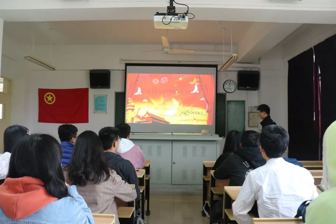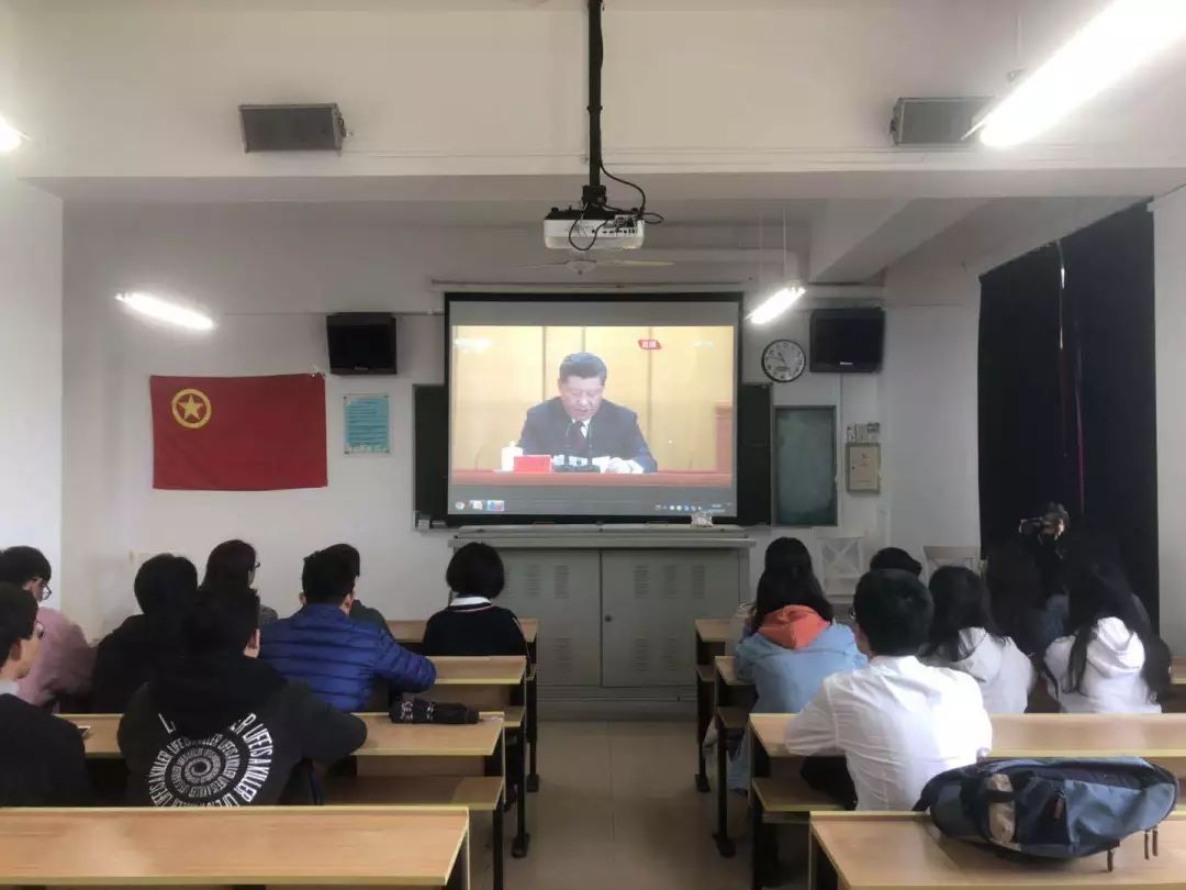 五四运动已走过百年岁月,今日,为弘扬五四青年精神、增强学生爱国情怀,我院组织团员代表们在2301教室观看纪念五四运动100周年大会直播。学院党总支书记戴迪萍,副书记夏卡莉,以及学院的辅导员老师们也一并参加了本次学习活动,大家齐聚一堂,认真聆听习近平总书记的讲话。同学们积极思考,感受颇多。