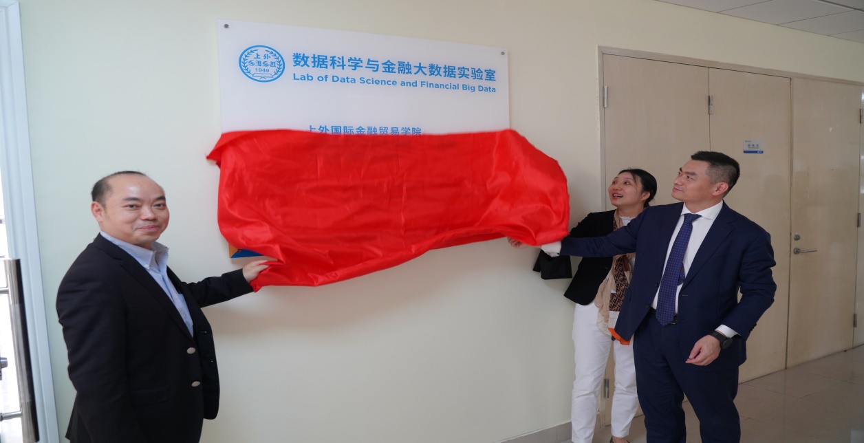 在热烈的掌声中,章玉贵院长、宋朝光总裁和夏晴书记共同为实验室揭牌,标志着上海外国语大学将通过联合实验室和互软集团就金融大数据正式展开深入研究和广泛合作。