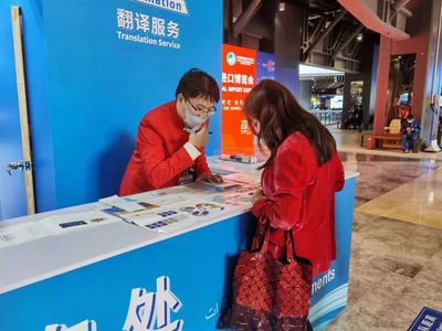 作为运营统筹组的小叶子,我在本次进博会中担任的是翻译的职务。大概的工作是在馆间通道的翻译服务点为展客商及参展人员提供多语种咨询、指引工作,同时协助做好现场的防疫管理工作。