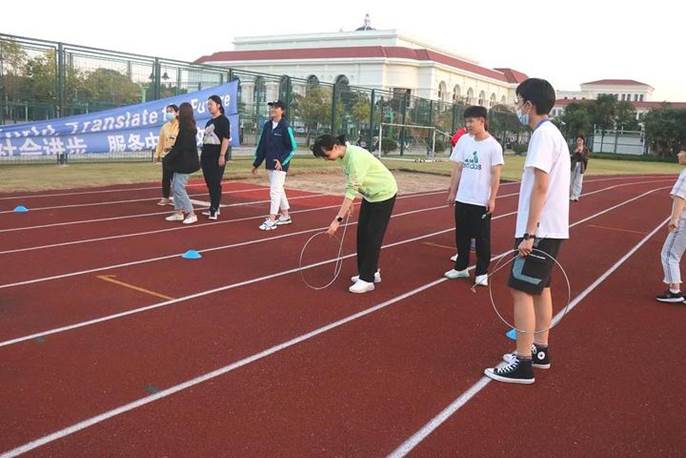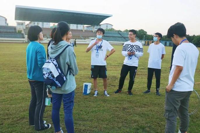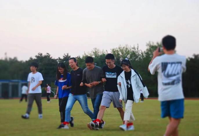 起初,大家的脚步都有些磕磕绊绊。经过十多分钟的试练之后,队员们的配合越来越默契,实现了从蹒跚到小跑的飞跃,每队的口号也越来越响亮。