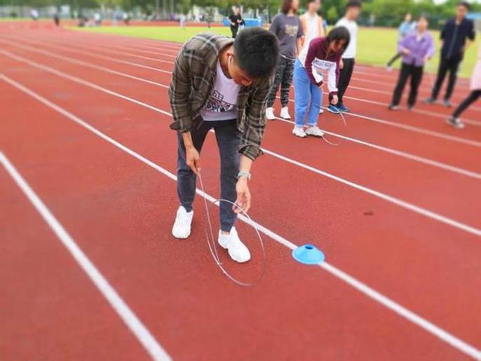 该项目要求运动员用铁钩控制铁环前行。游戏看似简单,实际极具技术含量。同样的,正式比赛之前,参赛队员可以先试练一段时间。