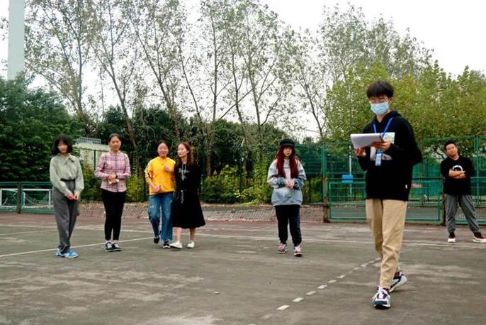 击鼓颠球是本次比赛中难度最高,同时队员参与度也最高的项目。每支队伍需要在10分钟的练习时间内迅速找到适合自己的比赛方法,培养队员默契,而后进入5分钟正式比赛时间。在5分钟内,每组单次最高击球次数即为该组成绩。