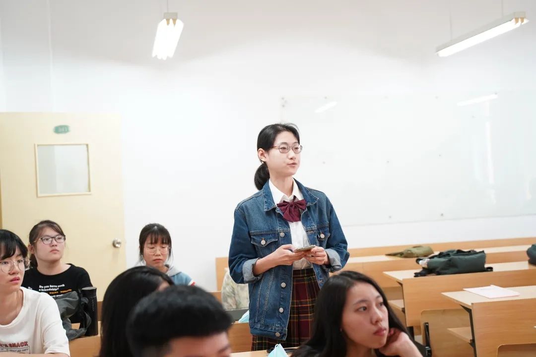 郑涵同学结合当下的国内国际现实,谈到了自己的感想。“总书记指出,青年是整个社会力量中最积极、最有生气的力量,国家的希望在青年,民族的未来在青年。作为国际金融贸易学院的学生,在学校生活中,我们要做到学习积累专业技能,提升道德修养。在工作中,发挥我们作为时代新青年的积极性、主动性和创造性,发挥示范和表率作用。在学习工作之余,积极参加志愿活动,参与社会实践,将个人梦想融入到时代潮流中,为实现中国梦做出一份贡献,奋斗是对祖国最长情的告白。”