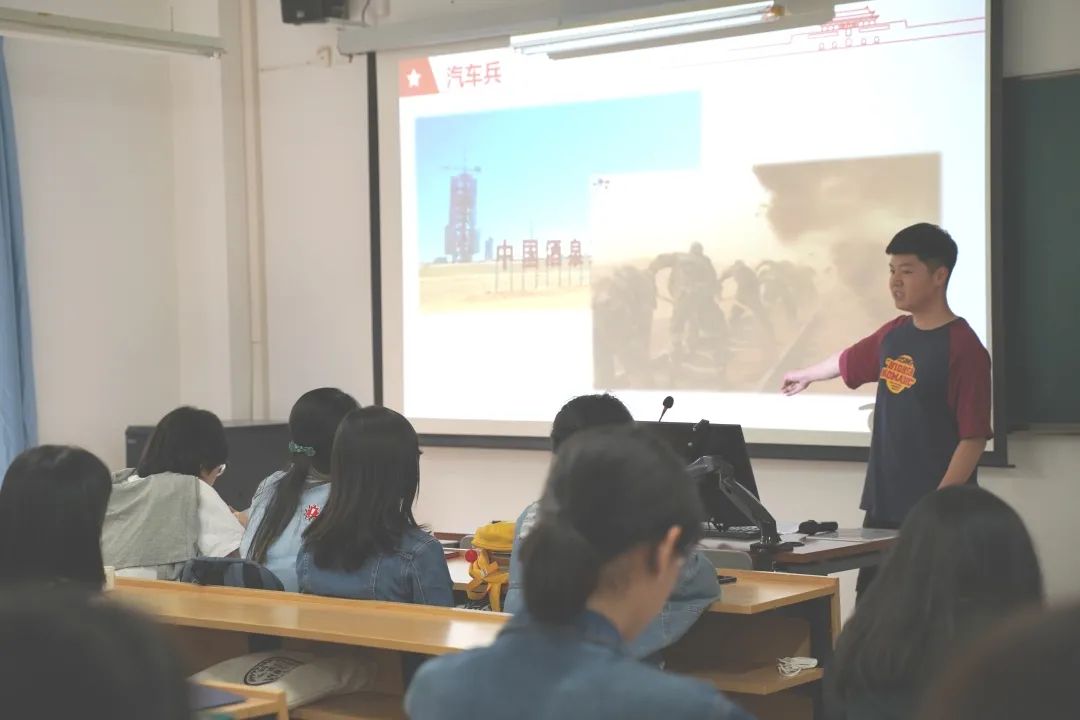 会议邀请刚刚退伍返校的学生吴永剑为大家带来了题为“永不退却的绿色”军旅生活的分享,向支部同学讲述了自己难忘的军旅生涯和参军故事,通过他在部队的经历以及所思所感所想,让广大支部同学切身感受到国家的强大,以及军人无怨无悔、牺牲奉献的精神风貌与强烈的政治意识和使命担当。此外,吴永剑同学还为同学详细介绍了党的成立过程、并通过回顾长征精神、抗战精神、抗美援朝精神、载人航天精神、战疫精神,使支部同学接受革命传统和爱国主义教育的洗礼和熏陶。